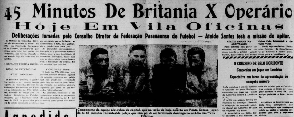 Era dia de meio jogo entre Operário e Britânia. Três dias antes, a partida fora interrompida após um torcedor invadir o campo e encher o árbitro de safanões. E é claro que aí virou o maior fuzuê. Para aquela complementação, não é que escalaram o já citado Ataíde Santos como juiz?