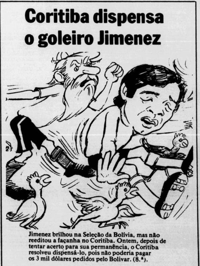Pelo menos é o que o Diário da Tarde deixa explícito na manchete sobre a saída do goleiro boliviano Jiménez. Contratado após brilhar pela seleção de seu país, ele fracassou no Alto da Glória.