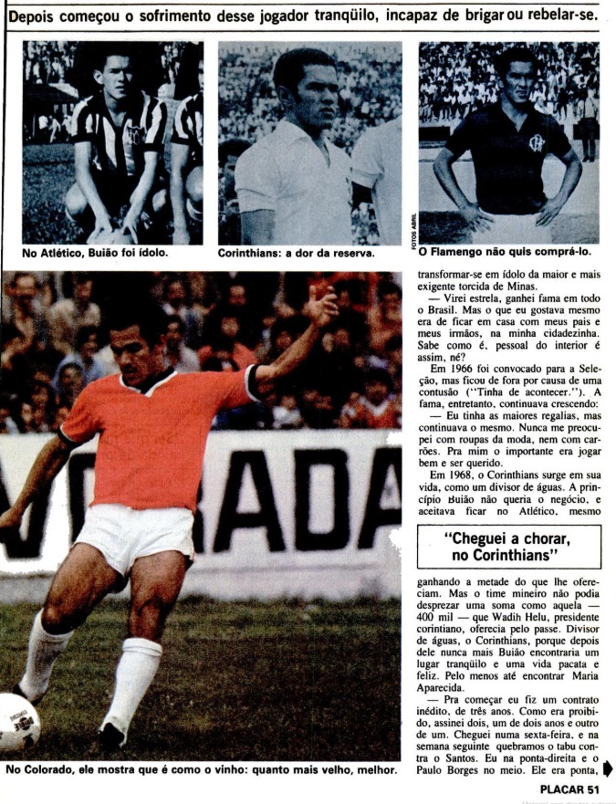 Falamos bastante essa semana sobre veteranos no futebol paranaense, e Buião brilhou no Colorado até os 35 anos. João Bosco dos Santos, que completa 72 anos neste 31 de janeiro, teve uma longuíssima trajetória no esporte. Começou com 18 anos no time profissional do Atlético-MG, chegou à seleção brasileira e em 1968 foi negociado com o Corinthians por uma fortuna. De lá, foi para o Flamengo por empréstimo, e aí em 1972 chegou a Curitiba. Primeiro pra defender o Athletico, que na época fez uma espécie de vaquinha para a sua contratação.