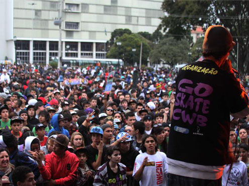 No próximo domingo (23) acontece a 5ª edição do Go Skate CWB, evento que celebra a prática do skate. Neste ano, a Prefeitura de Curitiba, através da Secretaria Municipal de Esportes, Lazer e Juventude, está ajudando na organização da passeata. São esperados entre 20 a 30 mil skatistas e simpatizantes que vão percorrer um circuito pré-determinado entre as praças Santos Andrade e Nossa Senhora de Salete, no Centro Cívico. A concentração está marcada para as 10 horas, na Praça Santos Andrade, com saída às 13h30. Devido ao Go Skate Day, o projeto Ciclolazer Curitiba será suspenso neste domingo no Centro Cívico.