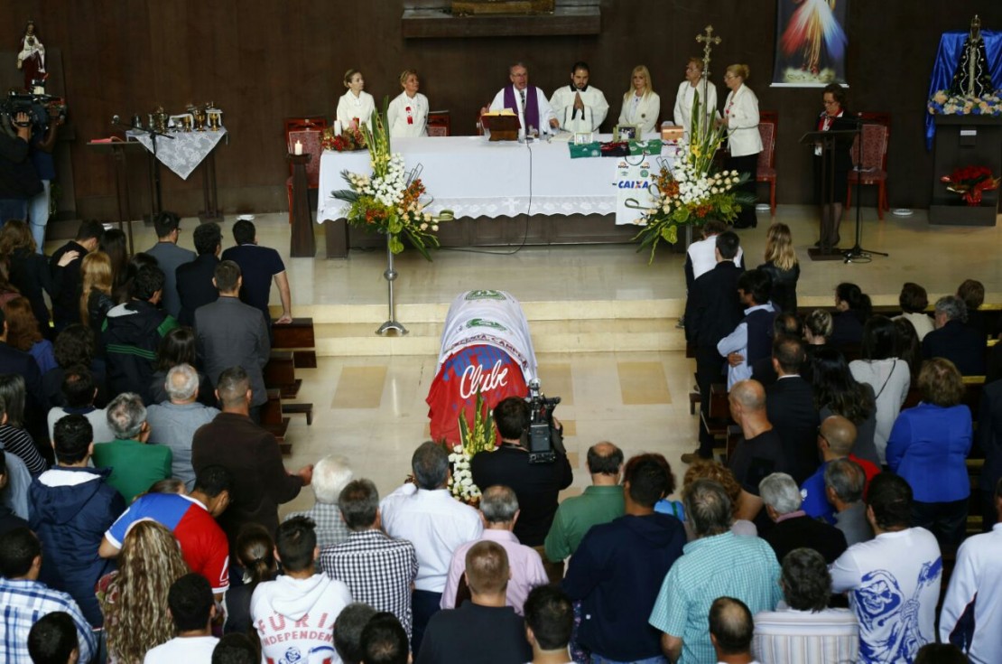 Ao longo de praticamente uma hora e meia de missa, muitas vezes foi difícil de conter o choro e a emoção. A todo momento tinha alguém olhando o caixão, que estava sob as bandeiras do Paraná Clube e da Chapecoense.