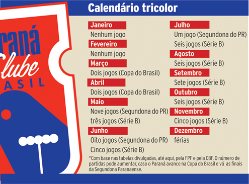 Caso supere o Ceará, o Tricolor já poderá ter pela frente um jogo da terceira fase no dia 25 de abril. A partir da daí, adeus “folga”. Com as competições simultâneas, o Paraná terá nada menos do que 56 jogos a disputar (sem contar Copa do Brasil) num período de 7 meses.