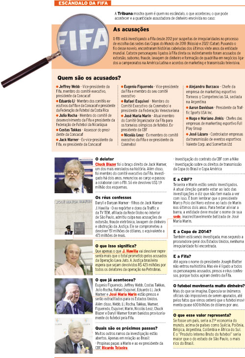 Quando Al Capone era o líder da máfia nos Estados Unidos, suas contravenções não eram suficientes para que ele virasse alvo de um processo na Justiça. Mas, como retrata a história de “Os Intocáveis”, foi por conta da sonegação de impostos, um problema muito menor dentro da lista de crimes do gângster, que ele parou na cadeia – dali foi puxado o fio daquela longa meada. Ontem, parece que o fio do futebol foi puxado. Uma ação do FBI, respaldada por três anos de investigações da Justiça dos Estados Unidos, prendeu sete personagens ligados à Fifa, entre eles o ex-presidente da CBF, José Maria Marin. As figuras foram detidas na Suíça, a apenas dois dias da eleição na entidade mais importante do futebol mundial – e que movimenta bilhões de dólares todo ano. De acordo com o FBI, o esquema envolveu um desvio de aproximadamente R$ 450 milhões. Além disso, as investigações avançam em cima das escolhas das sedes das Copas de 2018, na Rússia, e de 2022, no Catar. A Copa no Brasil, no ano passado, também faz parte do pacote.
