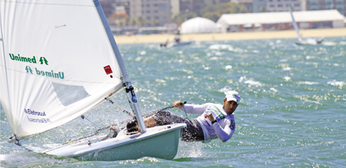Com um 5.º e um 6.º lugares nas duas regatas da flotilha azul, o brasileiro somou 11 pontos e aparece na 9.ª posição geral. Ao todo serão 14 regatas até que o campeão seja definido e apenas os dois piores resultados serão descartados pelos velejadores.