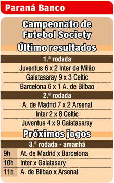 As oito equipes foram denominadas como Juventus, Inter de Milão, Galatasaray, Celtic, Barcelona, Atlético de Bilbao, Atlético de Madrid e Arsenal. Confira os últimos resultados e jogos de amanhã na tabela.
