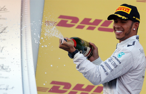 Rosberg, seu companheiro de equipe, adotou uma estratégia ousada após forçar uma troca de pneus em razão de uma freada brusca e conseguiu terminar a corrida na segunda colocação, completando a “dobradinha” da Mercedes. Já o finlandês Valtterri Bottas, da Williams, ficou em terceiro lugar e foi ao pódio.