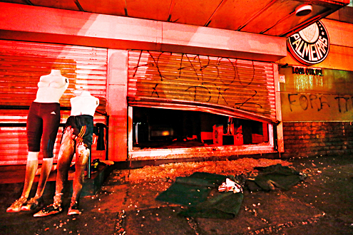A porta da loja alviverde havia sido pichada com a frase “Acabou a paz”. Quatro equipes dos bombeiros trabalharam no combate ao fogo, que começou por volta das 4h e foi controlado rapidamente.