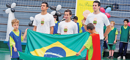 Futebolistas de clubes da capital paranaense estiveram ontem no Colégio Bom Jesus para uma ação social com estudantes. Na ocasião, crianças e adolescentes tiveram a oportunidade de conversar com os jogadores Luciano Castan e Douglas Packer, do Paraná, Helton e Neto, do Corinthians Paranaense, e Everton Ribeiro, do Coritiba, sobre atos solidários, união e respeito.