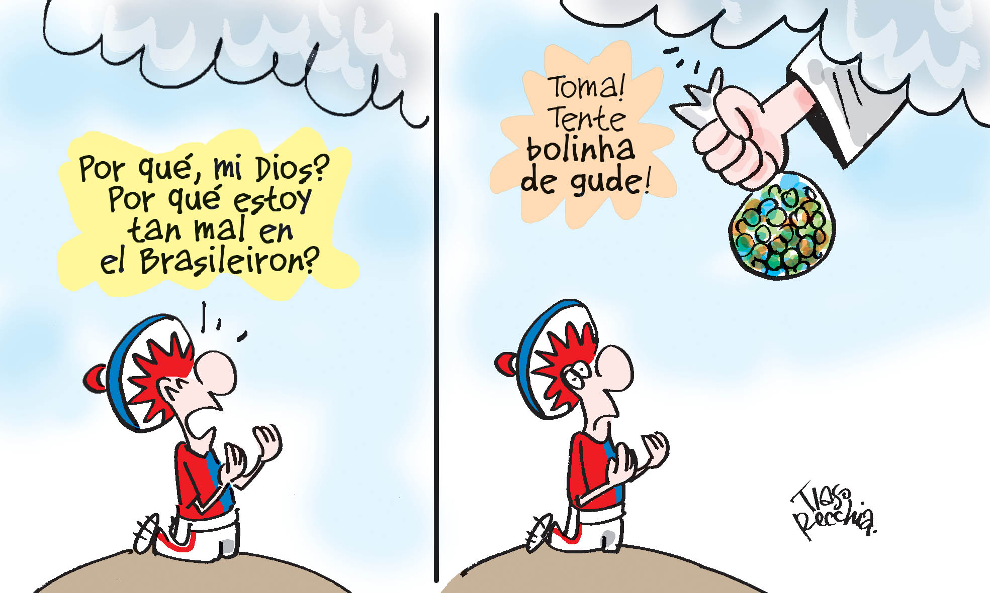 HomeEsportesLos 3 'Inimigos'Matéria Futebol não dá Los 3 inimigos – Tenta na bolinha de gude 1 minutos de leitura Por Tiago Recchia 23/10/18 07h00 Veja as charges anteriores Tragédia maior evitada! Ferido, motorista de van salva 15 pessoas antes de explosão na BR-376 Do plantio à venda Paranaense viaja 450 km por mês para não deixar tradição morrer Linda casa antiga! Casarão de 1876 em Curitiba vai renascer com nova e surpreendente função Receba Notícias no seu WhatsApp! Receba as notícias do seu bairro e do seu time pelo WhatsApp. Participe dos Grupos da Tribuna