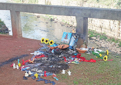 O bruxo Chick Jeitoso bem que tentou, mas não teve acesso ao Durival Britto, tampouco pode realizar a mandinga em frente ao portão do clube. O jeito foi atravessar a rua e montar a sua parafernália sobre a ponte do Belém.
