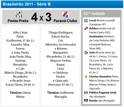 No lance seguinte, Ricardinho diminuiu para o Paraná, após bela jogada de Lima: 3 a 2. Mas, aos 45min, a Ponte fez mais um, com Lúcio Flávio marcando de novo. O Tricolor era guerreiro e Marinho, dois minutos depois, fez uma pintura de gol, diminuindo novamente. Mas, já era tarde. Final de jogo: Ponte Preta 4×3 Paraná Clube.