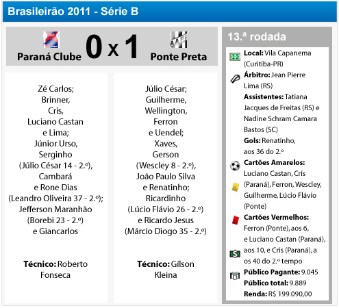 A torcida fez a sua parte e a Vila Capanema recebeu seu maior público em 2011, mas o Paraná Clube não aproveitou o clima de decisão criado pela galera e perdeu por 1 x 0 para a Ponte Preta, na noite de ontem.