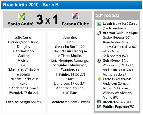 Aos 35min, Aloísio jogou um balde de água fria na torcida paranista. O atacante do Ramalhão fez fila na zaga e deu um bico. A bola foi ângulo da meta de Juninho. O tento fechou o caixão paranista. Final no Estádio Bruno José Daniel: Santo André 3×1 Paraná Clube.