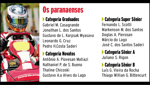 Por categorias, a Graduados é a que reúne maior número de competidores, com 27 inscritos. Depois vem Super Sênior, com 24; Novatos e Sênior A, 18; Sênior B, 16; e a categoria Super F-4, com 14 inscritos.