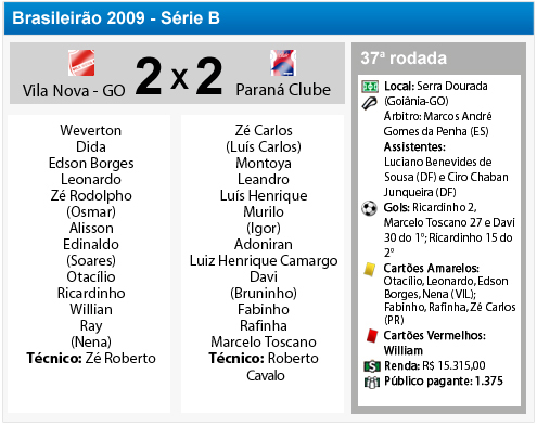 Paraná empata em 2 a 2 com Vila Nova em Goiás