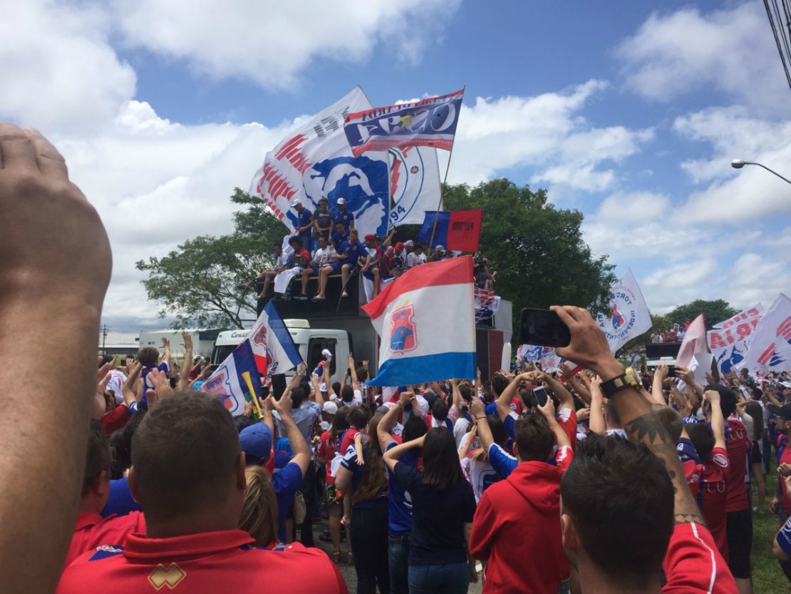 Por volta do meio-dia, chegou a informação de que o time não desembarcaria no portão convencional. A diretoria havia providenciado dois trios elétricos para a delegação deixar o aeroporto em desfile aberto.