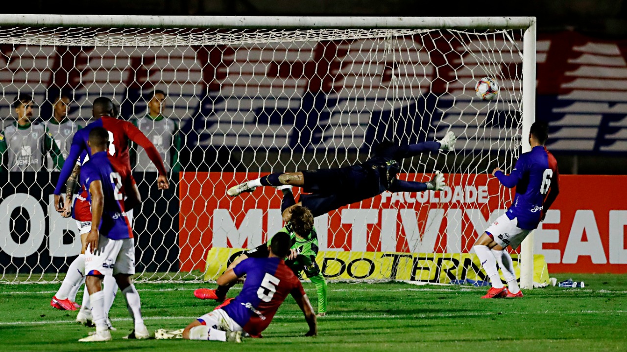 Alisson também subiu e pegou com tranquilidade a cabeçada de Eduardo Bauermann aos 13, e as bolas de Diego Ferreira aos 17 e João Paulo, aos 26. Do lado paranista, a melhor aproximação aconteceu aos 21, quando Andrey passou para Biteco, na direita. O meia-atacante demorou para concluir e ficou marcado, então rolou a bola para trás. Jhony vinha de trás e deu um chutão que passou muito pra cima da meta.