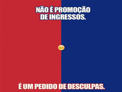 Por meio das redes sociais, o Paraná Clube divulga uma promoção de ingressos para o próximo compromisso na Série B do Brasileiro, com um pedido de desculpas ao torcedor.