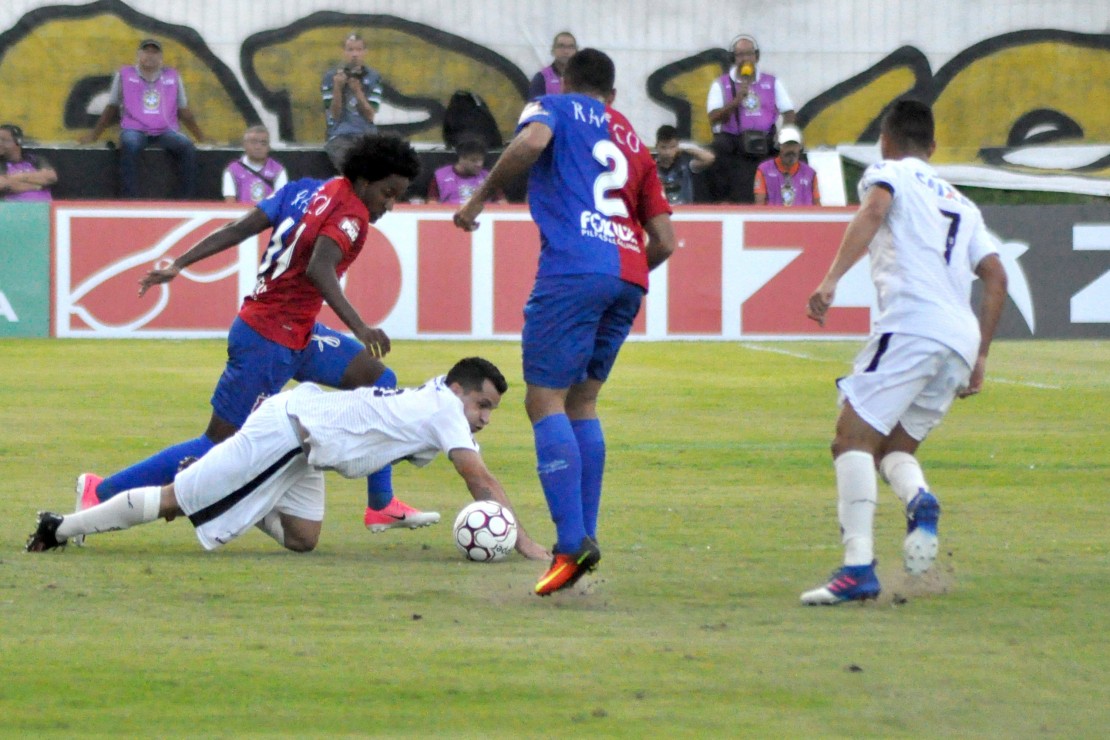 Só que não havia outra na região, e a partida ficou parada por quase vinte minutos. E quando a bola voltou a rolar enfim o Tricolor chegou com perigo na falta cobrada por Biteco, que Edson teve que se virar para defender. Pouco depois, foi a vez de Léo salvar, quando a zaga bobeou em um escanteio e Echeverría desviou. O jogo tinha melhorado.