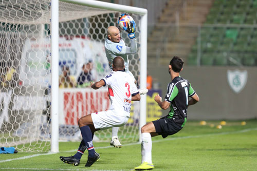 Longe de ser aquele time envolvente e com bom toque de bola de outras rodadas, o Paraná foi acuado pelo América-MG no primeiro tempo. Aos três minutos, depois da cobrança de escanteio, o zagueiro Alison subiu mais que a zaga e acertou a trave. Seis minutos mais tarde, em outra cobrança de escanteio, Bruno Sávio cruzou, a zaga paranista falhou e Robertinho apareceu livre na área para abrir o placar.