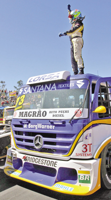Mas não foi o que aconteceu. Com um caminhão nitidamente mais rápido do que o dos adversários, ele foi passando um a um. Na bandeira amarela quadriculada, mostrada quando se completa um terço de corrida, ele já era o quinto. Giaffone continuava em segundo.