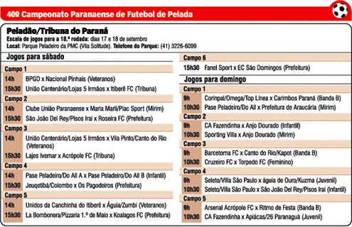 Em caso de precipitações forte de chuva, atletas e dirigentes poderão confirmar a realização ou não da rodada, informando-se pelo telefone (41) 8863-2435 (Jorge), hoje a partir das 13h e amanhã a partir das 8h. A todos bons resultados, muita disciplina e um bom final de semana. A escala oficial da rodada você confere acima.