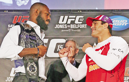 Já o brasileiro Vitor Belfort entra como franco-atirador na disputa do cinturão. E frisou que Jon Jones é o lutador preferido do seu filho. “É difícil comparar lutadores. É como tirar sua habilidade e força. Jon Jones é a nova geração de lutadores. É o lutador favorito do meu filho Davi. Ele fica tentando cotovelada rodada, joelhada no meu rosto”, disse o brasileiro.