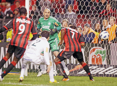 Mas o equatoriano Guerrón estava inspirado e numa arrancada, com bola matada no peito, foi derrubado pro Marcos e o árbitro Marcelo de Lima Henrique marcou pênalti. Marcinho, aos 25 minutos, empatou fechando o jogo em 2 x 2.
