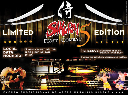 A quinta edição do Samurai Fight Combate/Limited Edition vai esquentar o ginásio do Círculo Militar do Paraná hoje à noite. Feras das artes marciais estarão se confrontando em combates no ringue e no octagon.