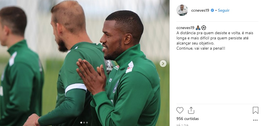 Um dos jogadores do Coritiba mais participativos nas redes sociais é o lateral-direito Carlos César. Longe de ser uma unanimidade no Alto da Glória, e tendo jogado apenas duas partidas pelo clube, ele vem postando mensagens de motivação nas redes sociais. Nesta quarta-feira (30), ele falou em “alcançar objetivos” e que é preciso continuar a luta, porque “vai valer a pena”.