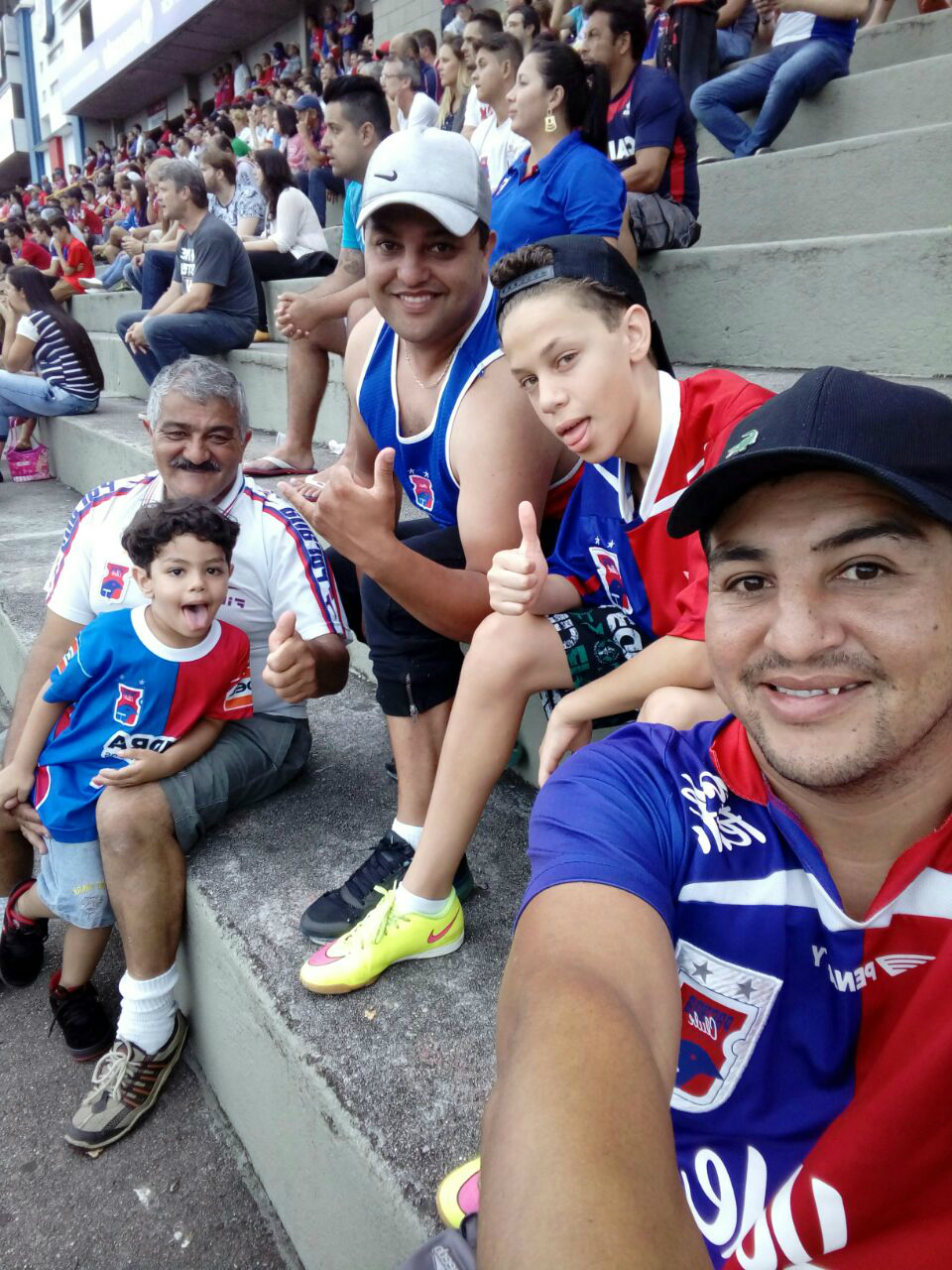 “Eu sou o que está com a regata, o que está do meu lado de chuteira amarela é meu filho, e do lado do meu filho é meu irmão, e do meu lado esquerdo é o meu pai com meu outro irmão mais novo”. Entendeu? O fundamental é entender que a família tricolor está reunida: pai Jurimar, filhos Benjamin, William e Clevertom e neto Lorenzo. Todo mundo ao lado do Paraná Clube!
