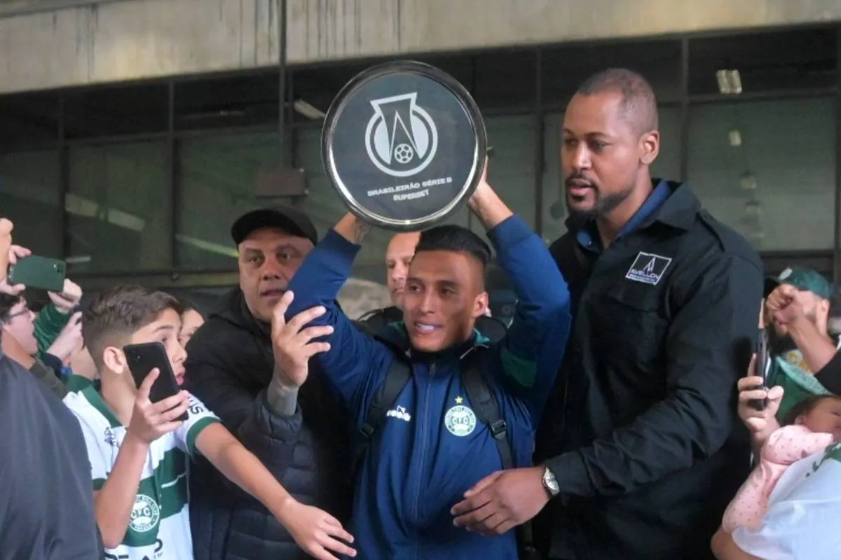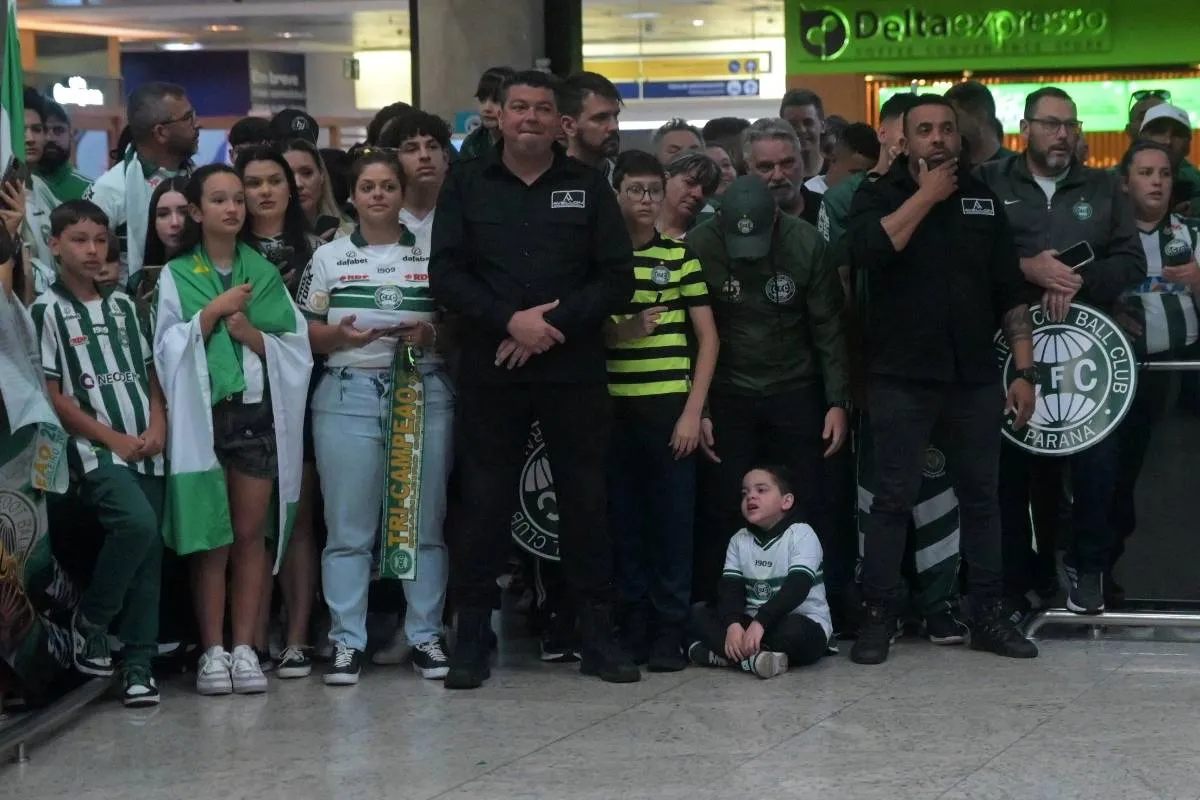 Centenas de torcedores alviverde compareceram ao Aeroporto Afonso Pena, em São José dos Pinhais, para recepcionar os heróis que garantiram o retorno do clube à Série A depois de uma temporada na segundona. A delegação desembarcou ostentando o troféu que não vinha para as mãos coxa-brancas há 15 anos.