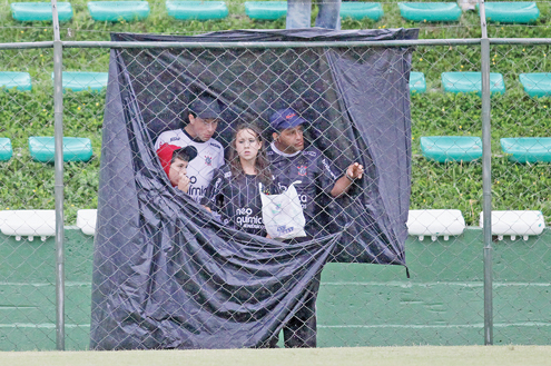 Como ninguém é de ferro, improvisaram um “camarote vip” com lona preta e ficaram grudados no alambrado pra não perder nenhum lance. Pelo esforço, criatividade e devoção à equipe, esses corintianos bem que mereciam ver um “chocolate” do Corinthians. Como não deu, comemoraram o empate.