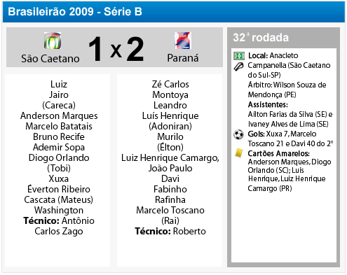 A “faísca” teria que ser mantida. E para o sonho quase impossível de voltar à Série A continuar, era obrigatório vencer o São Caetano no ABC paulista. Já que a melhor atuação do Paraná na temporada tinha sido a última, contra o Guarani, o técnico Roberto Cavalo repetiu a formação bem sucedida, com Davi, Rafinha e Marcelo Toscano como os homens de meio-campo e frente.