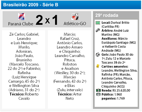 O Paraná Clube recebeu o Atlético Goianiense na noite desta sexta-feira, na Vila Capanema, em Curitiba, e venceu por 2 a 1. Com a vitória, o Tricolor sobe para 12.ª colocação, agora com 38 pontos somados na Série B. O próximo compromisso do time do técnico Roberto Cavalo será no sábado (17), às 21 horas contra o Ipatinga, fora de casa.