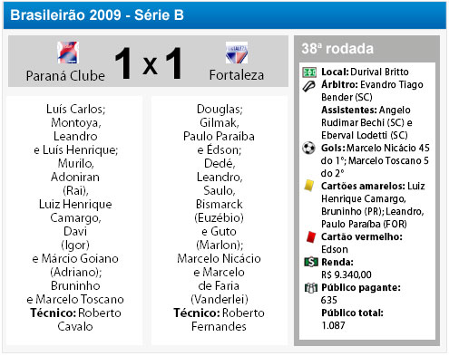 Após levar o gol, o Fortaleza se fechou buscando os contra-ataques e o jogo caiu de produção. O Tricolor de Vila Capanema quase virou o jogo aos 30 minutos. Toscano recebeu bola longa, dividiu com o goleiro e sem ângulo tentou o chute, mas a bola foi para fora. Tricolor tentou a virada até o fim, mas não conseguiu. Final: Paraná 1, Fortaleza 1.