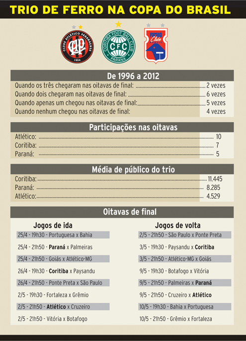 O bom início de temporada de Coritiba, Atlético e Paraná Clube em 2012 fez os três principais times paranaenses voltarem, depois de 16 anos, a figurar entre os 16 melhores times da Copa do Brasil. De quebra, o futebol do Paraná mostra estar fortalecido e é o segundo Estado que tem mais representantes nas oitavas de final da competição nacional – atrás apenas de São Paulo.