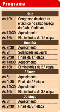 A competição, que será realizada de hoje a domingo, acontece no Clube Curitibano, em Curitiba, com a participação de 647 atletas de 115 clubes do Brasil.