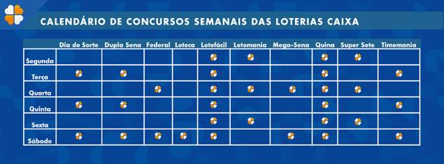 Confira o novo calendário de jogos das Loterias CAIXA: