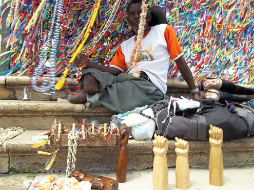 O fotógrafo caminhou pelas ruas da capital baiana e buscou traduzir em imagens o universo místico que toma conta da cidade durante a sexta-feira, dia do Sr. Do Bonfim.