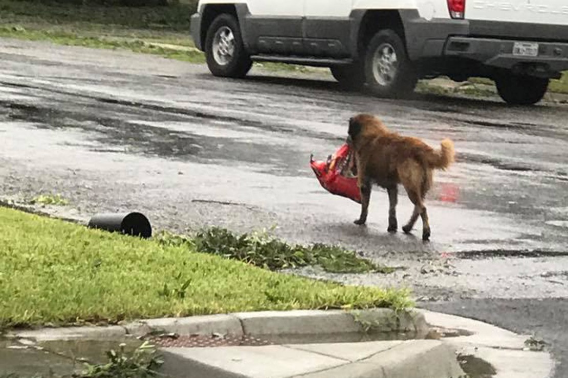 O furacão Harvey atingiu neste sábado, 26, diversas cidades nos Estados Unidos deixando mortos e feridos. Um dos locais impactados foi Sinton, no Estado do Texas, onde um cachorro foi visto vagando pelas ruas ainda molhadas carregando na boca um saco de ração.