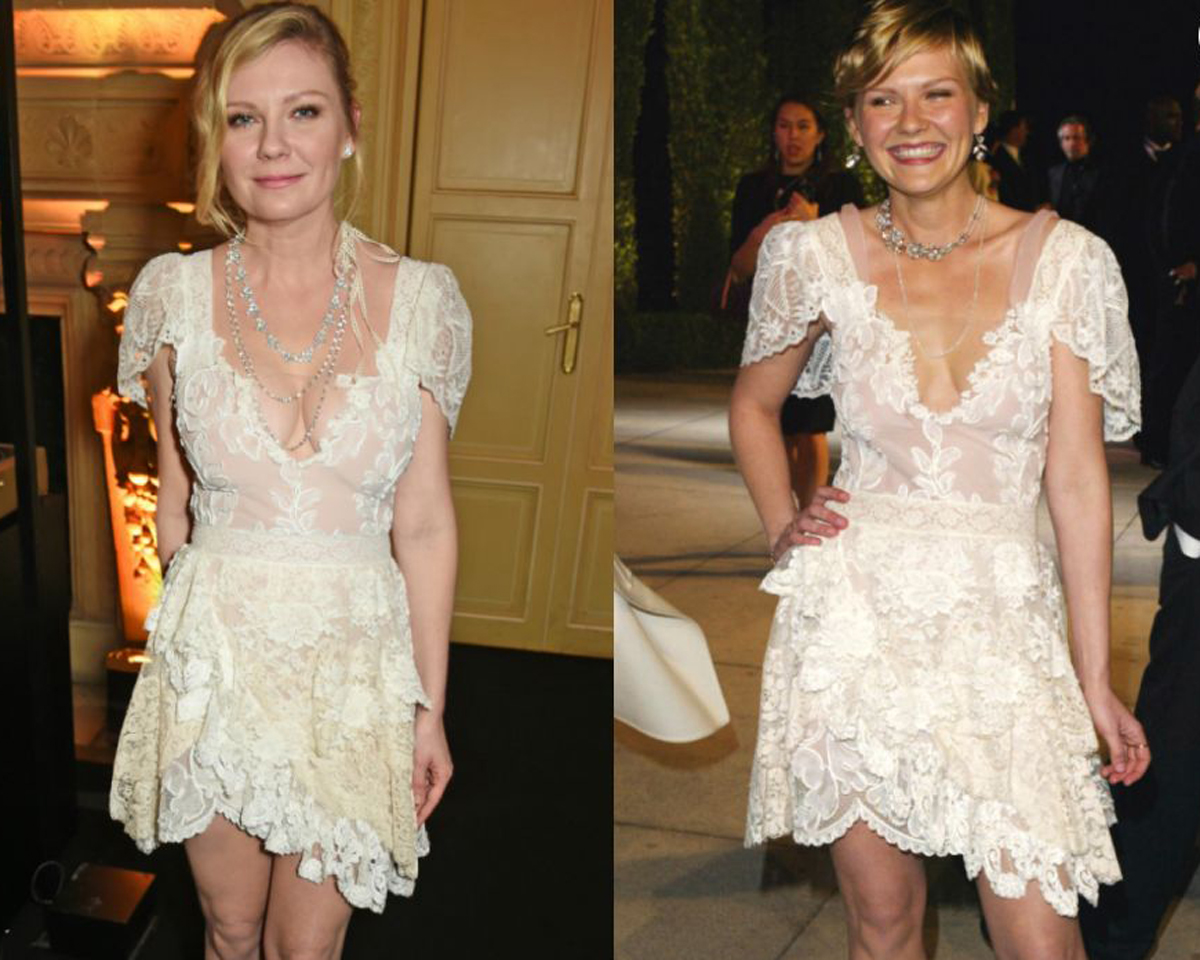 Kirsten Dunst foi a uma festa domingo e não pensou duas vezes em repetir o mesmo vestido que usou no Oscar de 2004. Ela não é a primeira famosa a repetir um look, sem qualquer alteração nele. 13 anos depois, ela mostrou que ainda está com o mesmo corpo de quando tinha 20 anos.
