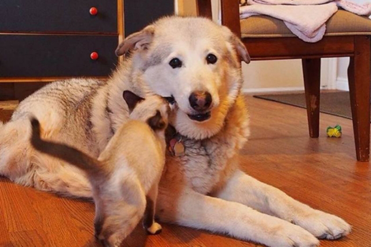 Quem disse que cães e gatos não podem se bicar? A história de Flora, uma cadela da raça malamute do Alasca, mostra que isso não é verdade. Ela perdeu recentemente seu melhor amigo, Dexter, um gato que morreu aos 20 anos de idade.
