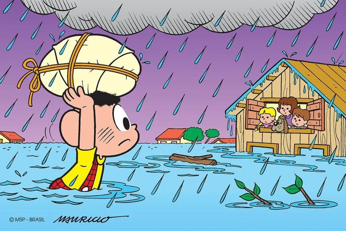 A Turma da Mônica resolveu ajudar os desabrigados pelas enchentes no Rio Grande do Sul com uma campanha. Nela, coloca o personagem Cascão na água em prol de quem mais precisa.