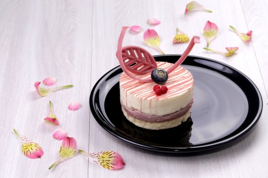 Bee.O: Torta com massa a base de castanha do pará, namelaka de Ruby, ganache de Ruby com açaí e cachaça de Ruby com frutas vermelhas, geleia de açaí e cachaça, frutas vermelhas e tuile de tapioca – R$ 23,00