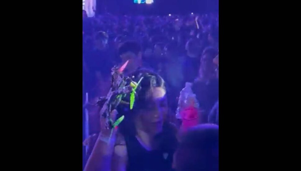 Um drone caiu na cabeça de uma fã durante a música “Meteoro”, cantada por Luan Santana, em show que ele fazia na cidade de Campo Grande (MS). Ela não se machucou.