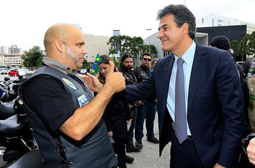 O cantor inglês Blaze Bayley, ex-vocalista da banda Iron Maiden, que se apresenta nesta terça-feira (29) em Curitiba, foi recebido pelos representantes de diversos motoclubes da cidade e também pelo governador Beto Richa e pelo prefeito Gustavo Fruet.