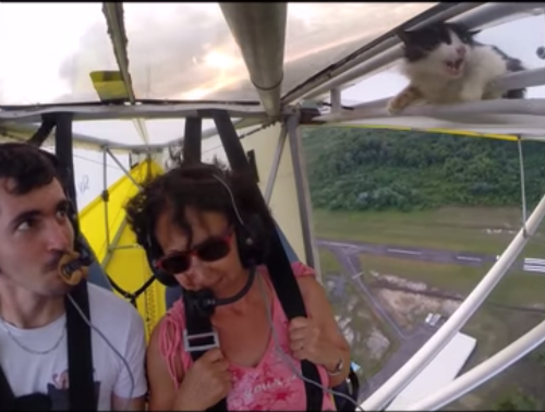 A carona que um gato ‘pegou’ em um ultraleve está dando o que falar. Um instrutor voava normalmente com a sua aluna, quando percebeu que havia um tripulante para lá de inusitado. O felino teria tirado um cochilo nas asas e acordou no ar.