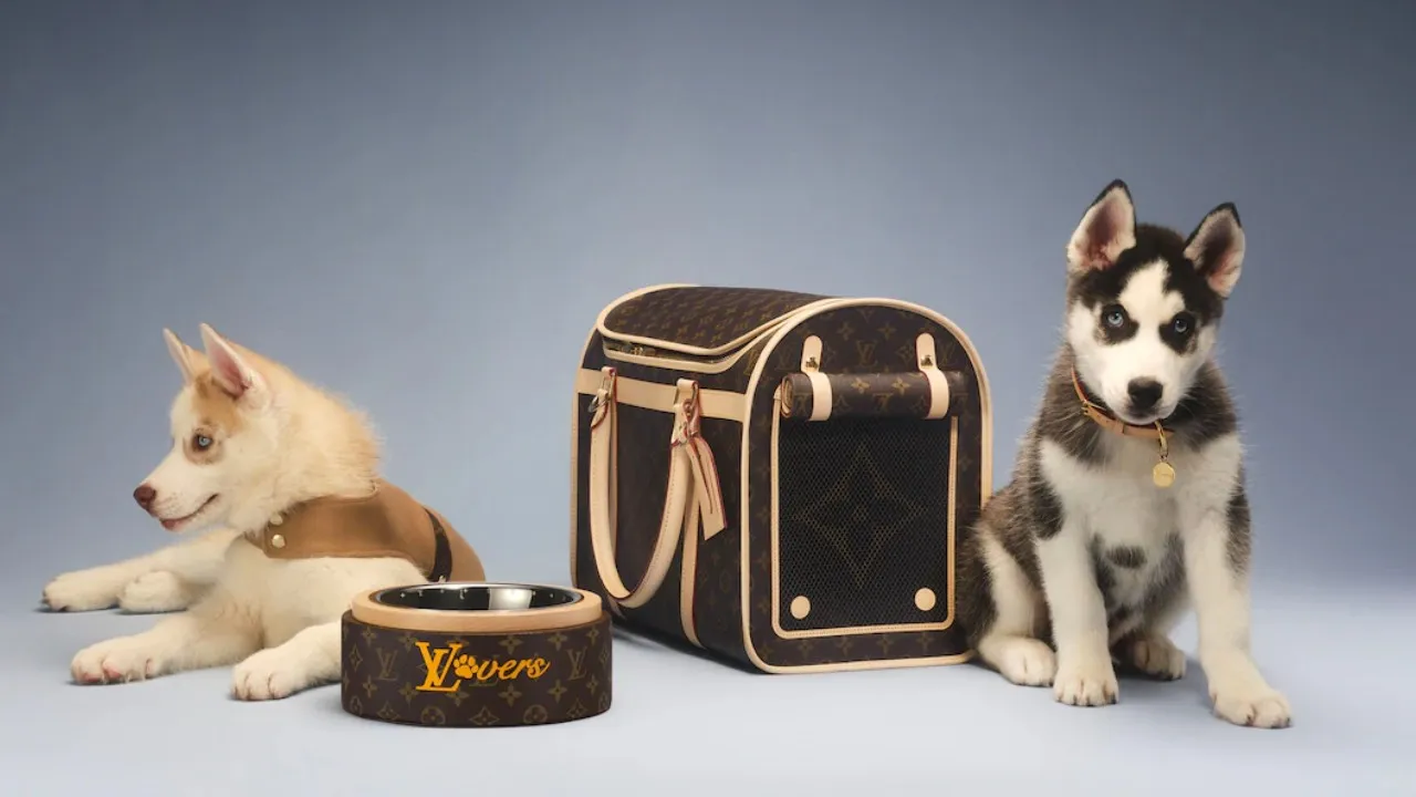 A coleção é assinada por Pharrel Williamns, diretor criativo da parte masculina da Louis Vuitton desde o ano passado. Também foram lançadas coleiras e comedouros e acessórios para cães e gatos.