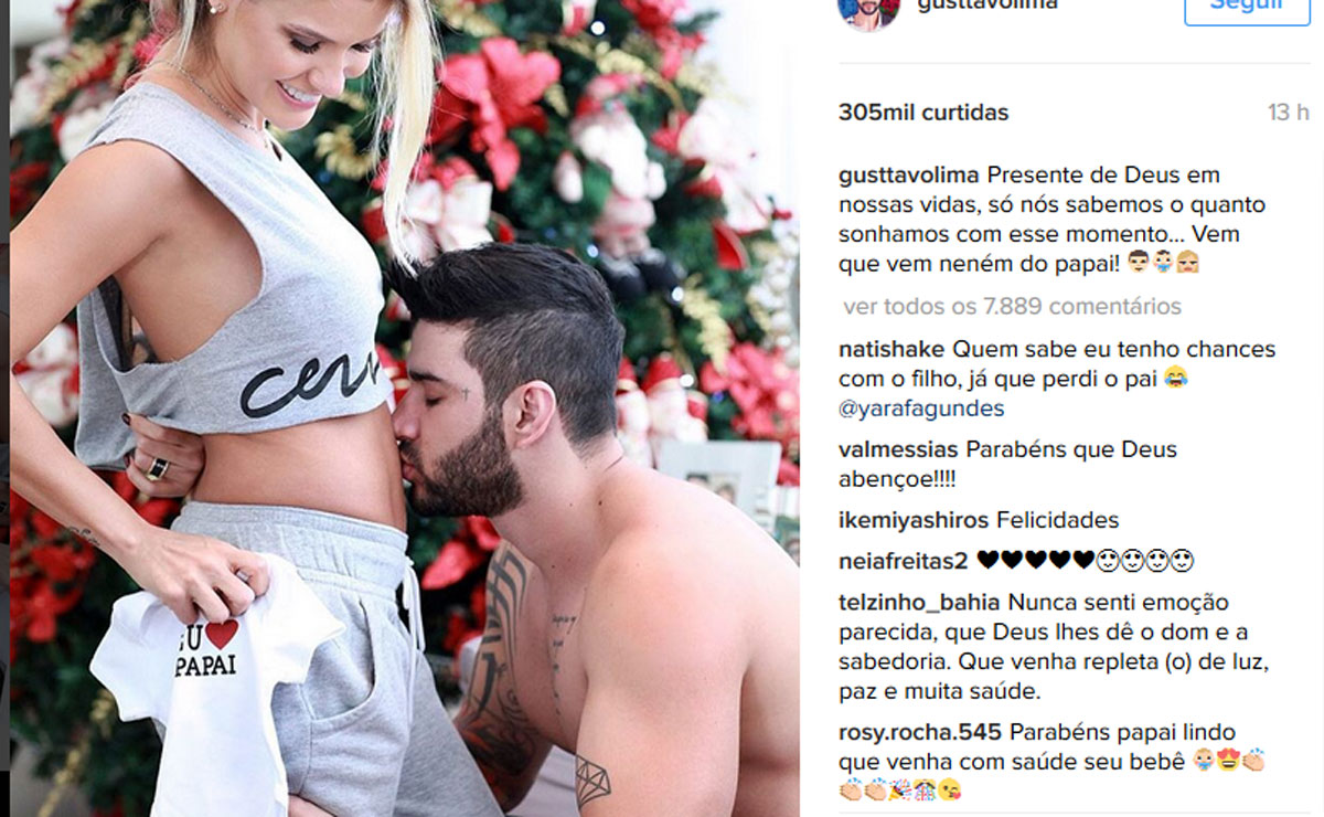 Já Gusttavo tinha o desejo há bastante tempo.”Sempre sonhei em ter minha família: mulher e filhos. Gosto de casa cheia e não vejo a hora de ver meu menino correndo para todo lado”, revelou, contando também o sexo do bebê.